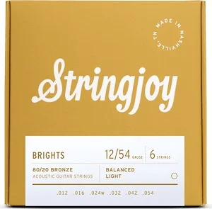 Price: $31.99 Qty Discount From: $28.65 Add to CartStringjoy Brights | Light Gauge (12-54) 80/20 Bronze Acoustic Guitar Strings
