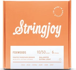 Price: $47.99 Qty Discount From: $45.19 Add to CartStringjoy Foxwoods | Extra Light Gauge (10-50) Coated Phosphor Bronze Acoustic Guitar Strings
