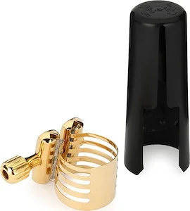 Rovner 2R Dark Ligature with Cap for Hard Rubber Tenor Sax, Gold Fittings