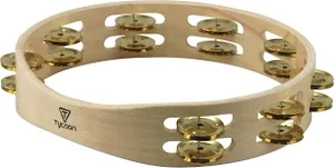 Double Row Headed Wooden Tambourine - Bright Brass Jingles
