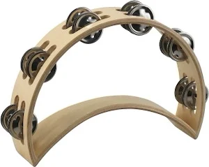Single Row Headed Wooden Tambourine - Bright Steel Jingles